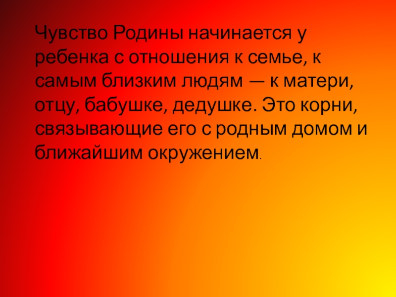 Слайд 4Чувство Родины начинается у ребенка с отношения к семье, к самым