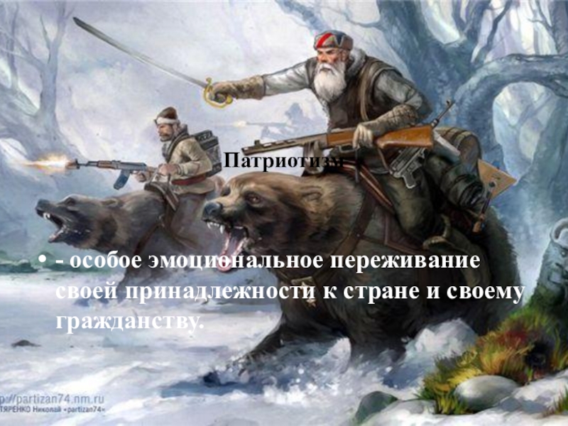 - особое эмоциональное переживание своей принадлежности к стране и своему гражданству.