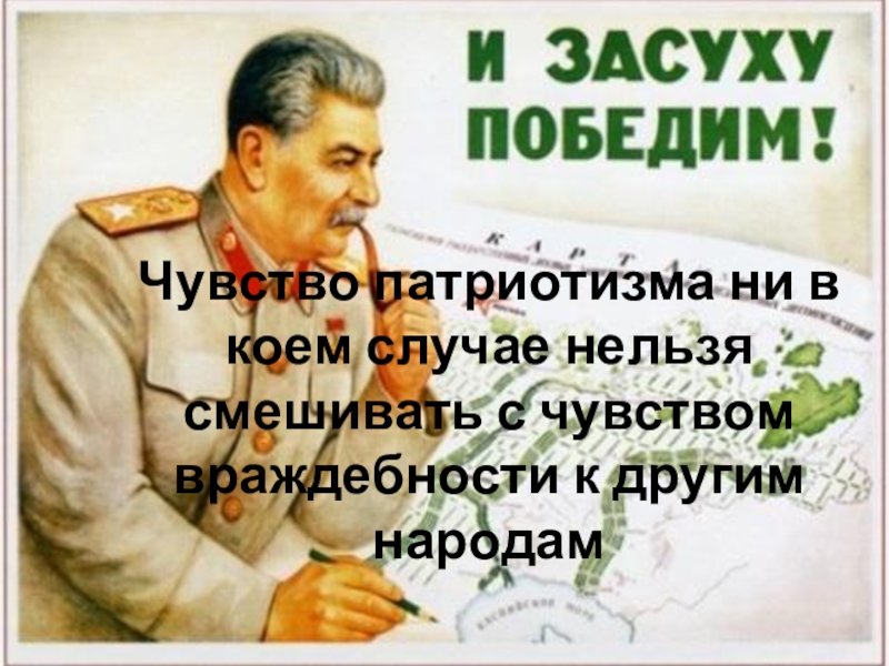 Слайд 10Чувство патриотизма ни в коем случае нельзя смешивать с чувством враждебности