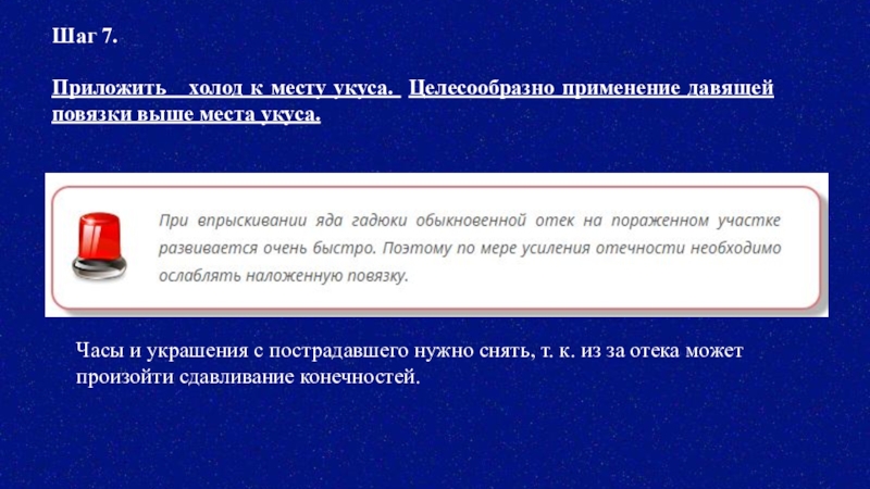 Часы и украшения с пострадавшего нужно снять, т. к. из за отека может произойти сдавливание конечностей.