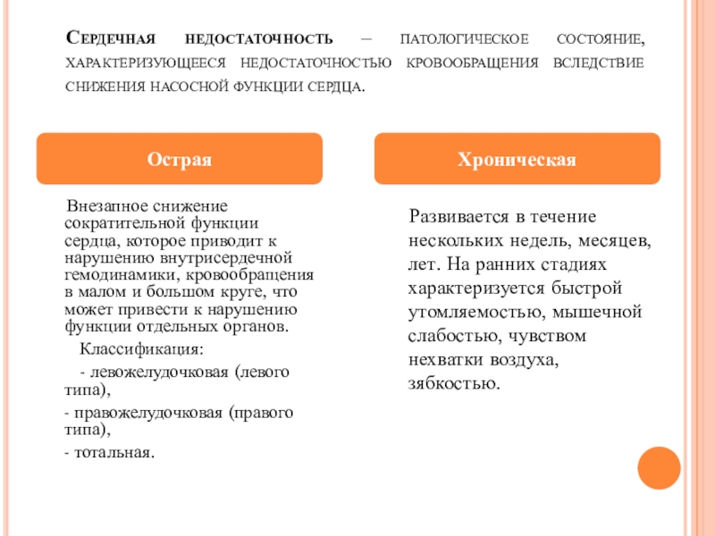 Слайд 16Сердечная недостаточность – патологическое состояние, характеризующееся недостаточностью кровообращения вследствие снижения насосной