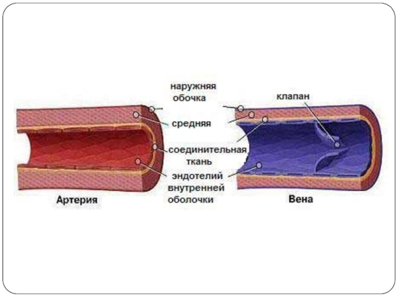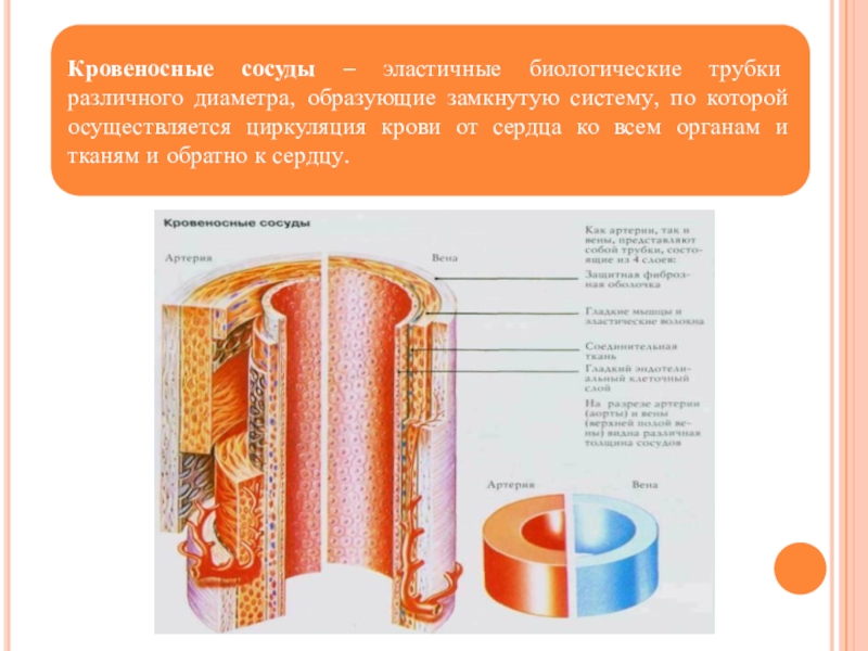 Слайд 9Кровеносные сосуды – эластичные биологические трубки различного диаметра, образующие замкнутую систему,