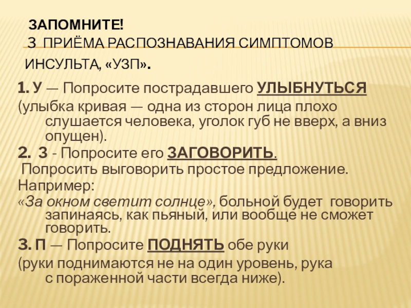 3 приёма распознавания симптомов инсульта, «УЗП».