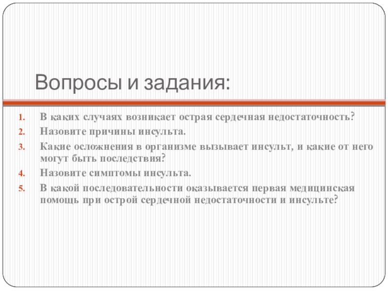 В какой последовательности оказывается первая медицинская помощь при острой сердечной недостаточности и инсульте?