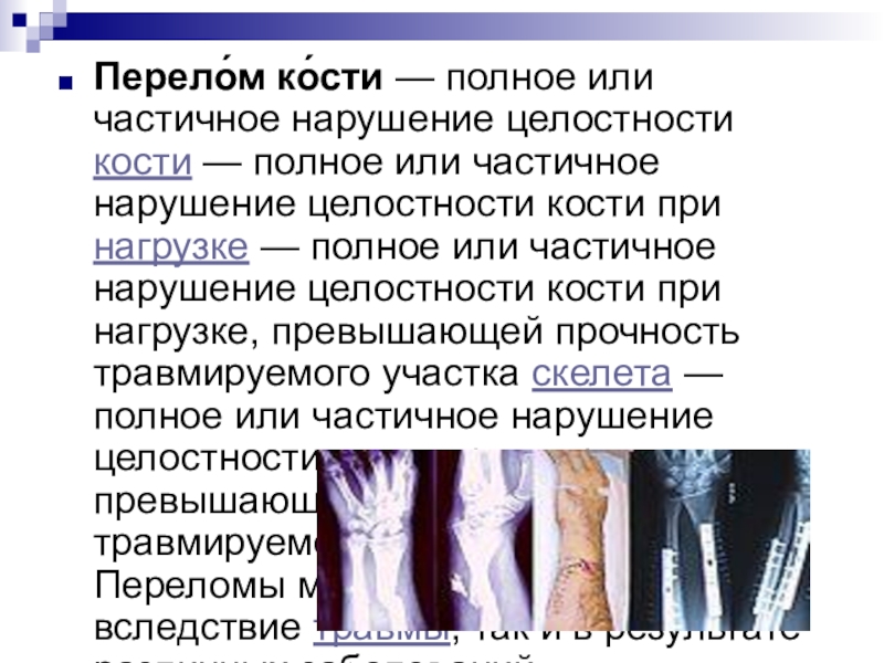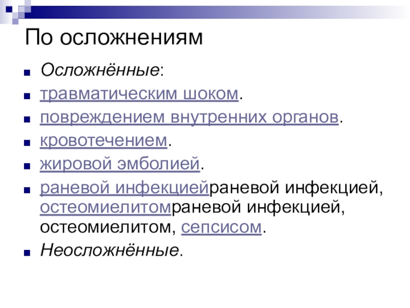 Гематома — появляется в области перелома (чаще не сразу). Пульсирующая гематома свидетельствует о продолжающемся интенсивном кровотечении.