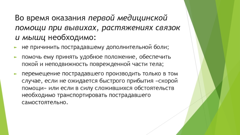 Вывихи возникают при смещении суставных поверхностей костей. При этом нарушается целостность суставной сумки, иногда разрываются связки. Основные признаки вывихов в суставах конечностей: боль в суставе, нарушение движений в нем, изменение формы сустава.
