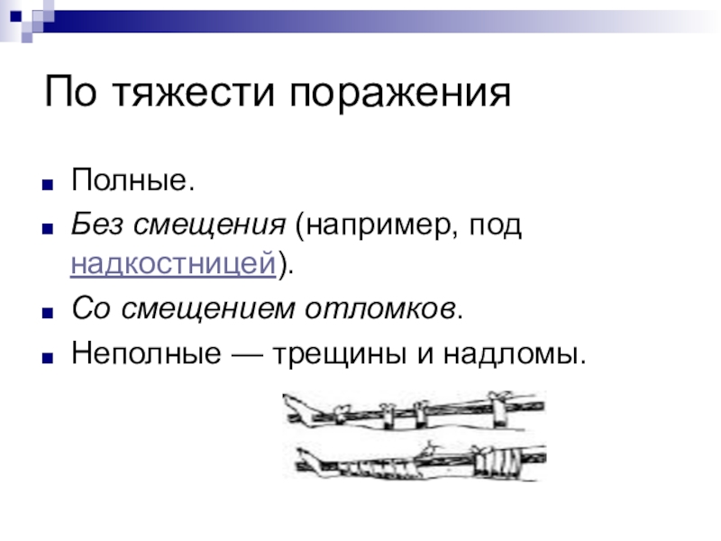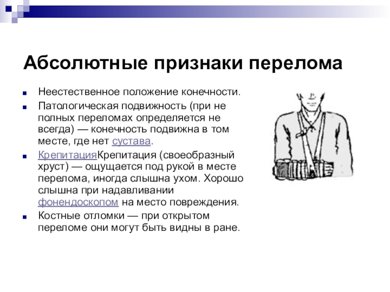 Нарушение функции повреждённой конечности — подразумевается невозможность нагрузки на повреждённую часть тела и значительное ограничение подвижности.