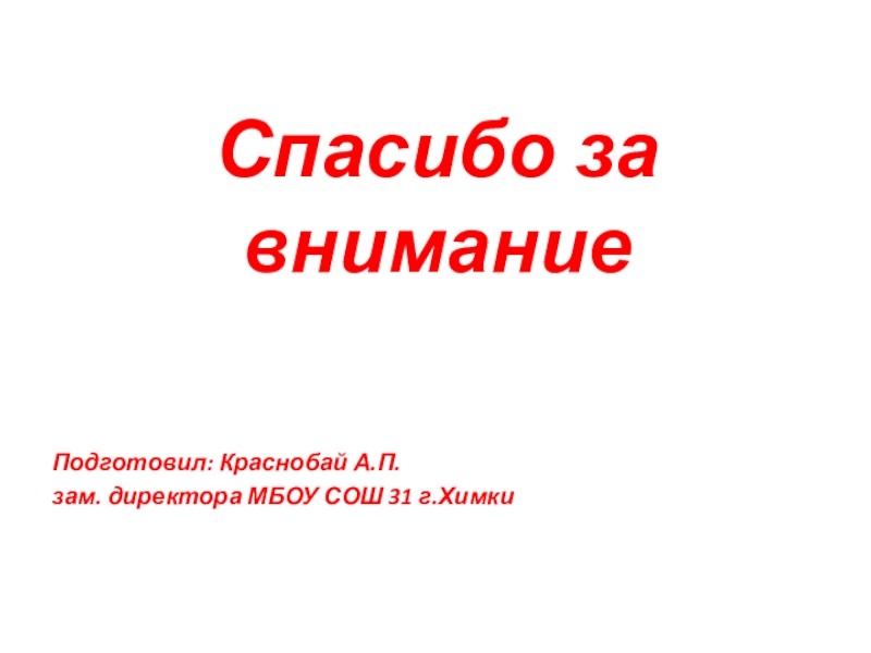 Спасибо за вниманиеПодготовил: Краснобай А.П.зам. директора МБОУ СОШ 31 г.Химки