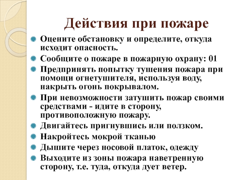 Слайд 9Действия при пожаре и невозможности покинуть помещение