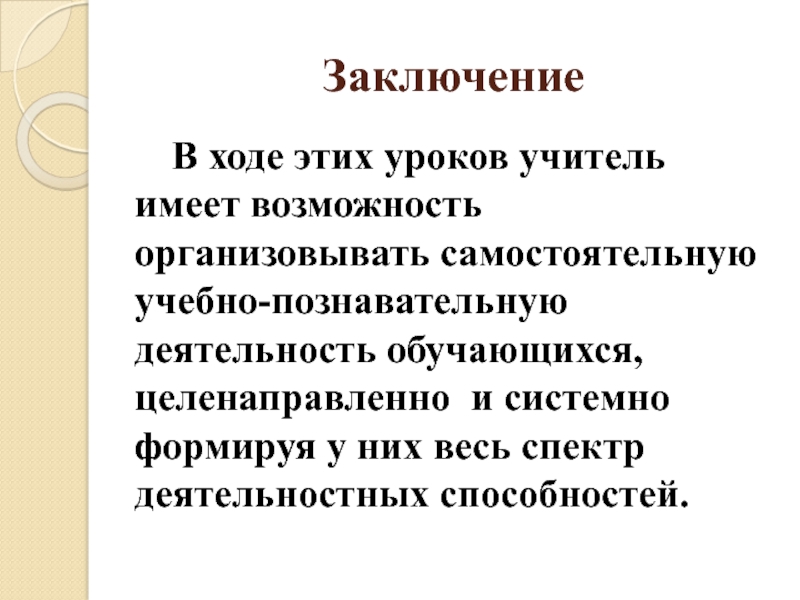 В ходе этих уроков учитель имеет возможность организовывать самостоятельную учебно-познавательную