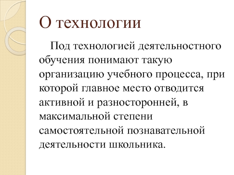 Под технологией деятельностного обучения понимают такую организацию учебного процесса, при