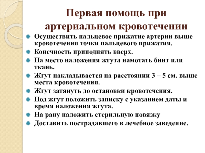 2 группа: «Первая помощь при артериальном кровотечении» (нижней части левого предплечья)