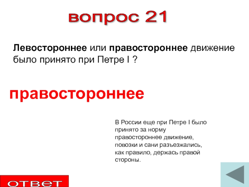 В России еще при Петре I было принято за норму правостороннее движение, повозки и сани разъезжались, как правило, держась правой стороны.
