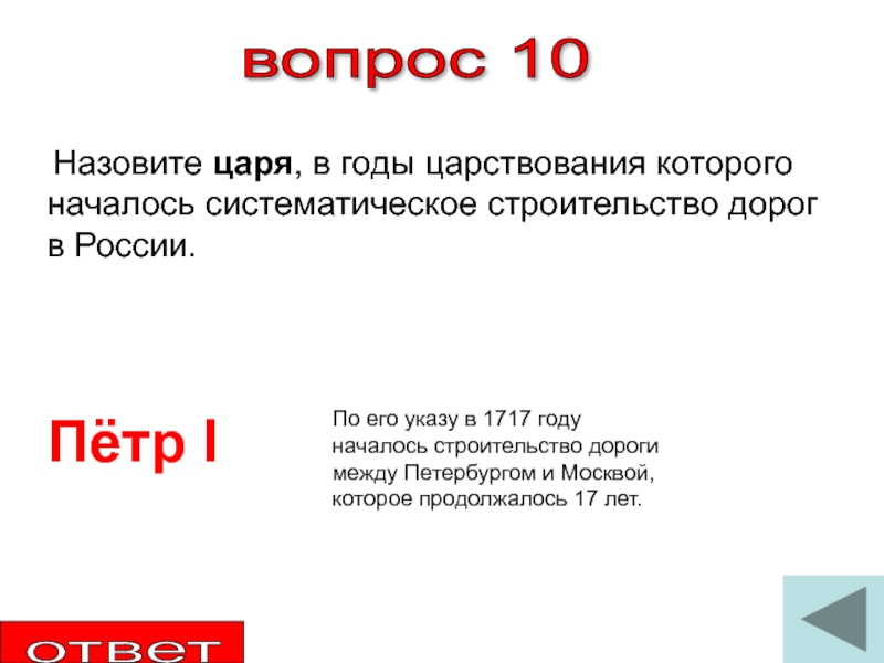 По его указу в 1717 году началось строительство дороги между Петербургом и Москвой, которое продолжалось 17 лет.