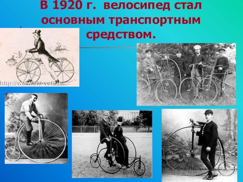 Слайд 8В 1920 г. велосипед стал основным транспортным средством.
