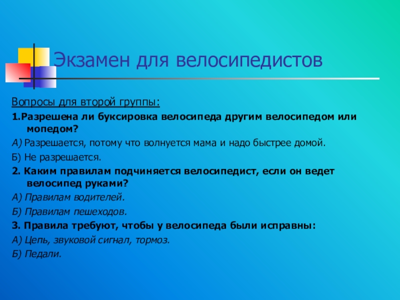 1.Разрешена ли буксировка велосипеда другим велосипедом