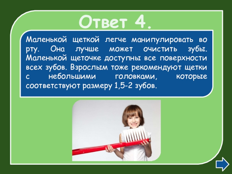 Вопрос 4. Чем больше щетка, тем лучше ей чистить зубы?