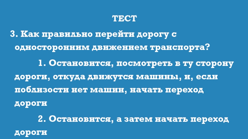 3. Как правильно перейти дорогу с односторонним движением транспорта?