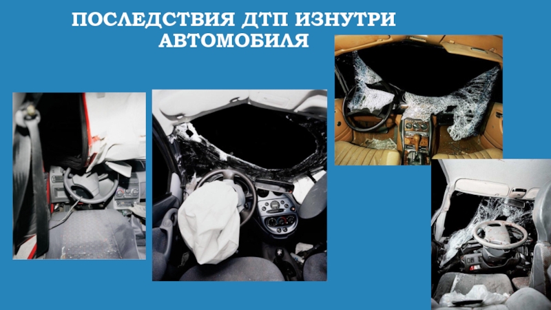 Слайд 38Последствия дтп изнутри автомобиля