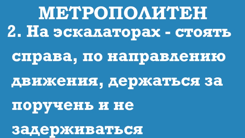 2. На эскалаторах - стоять справа, по направлению движения, держаться за