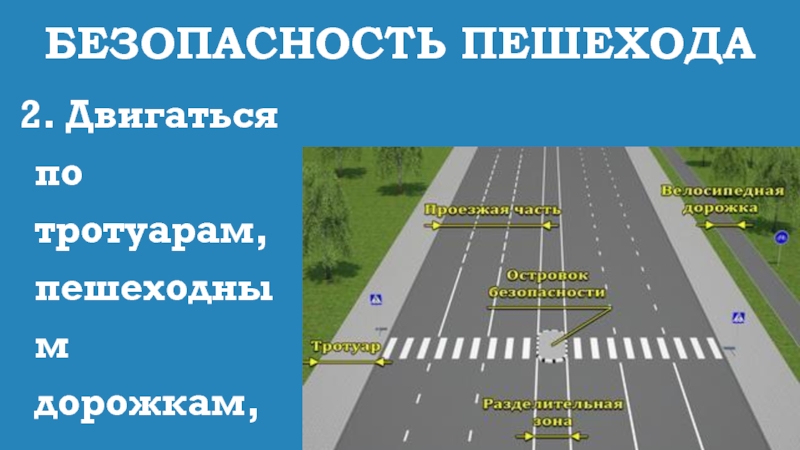 2. Двигаться по тротуарам, пешеходным дорожкам, по обочинам