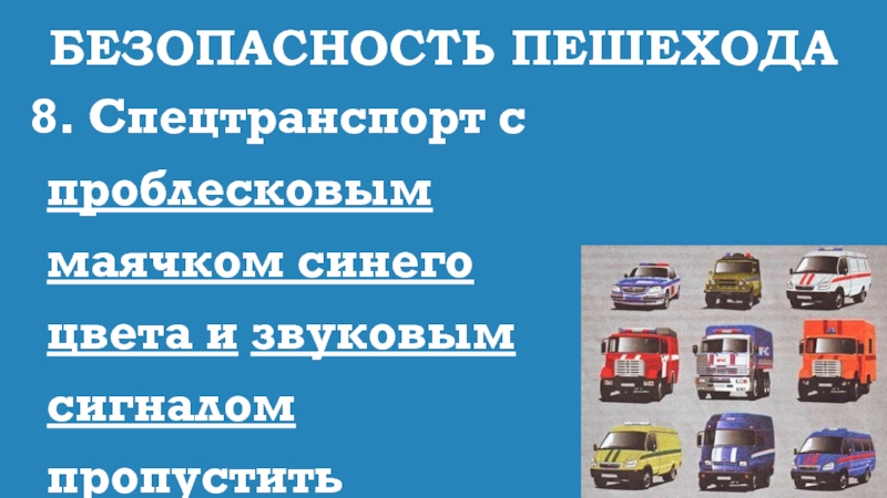 8. Спецтранспорт с проблесковым маячком синего цвета и звуковым сигналом
