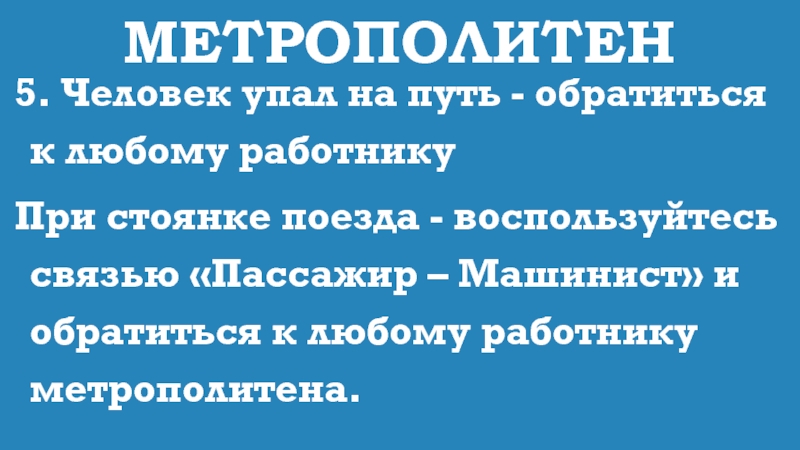 5. Человек упал на путь - обратиться к любому работнику