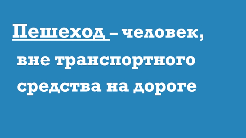 Слайд 2Пешеход – человек, вне транспортного средства на дороге