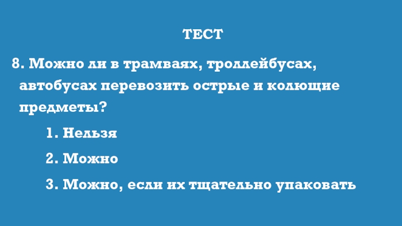 8. Можно ли в трамваях, троллейбусах, автобусах перевозить острые и колющие