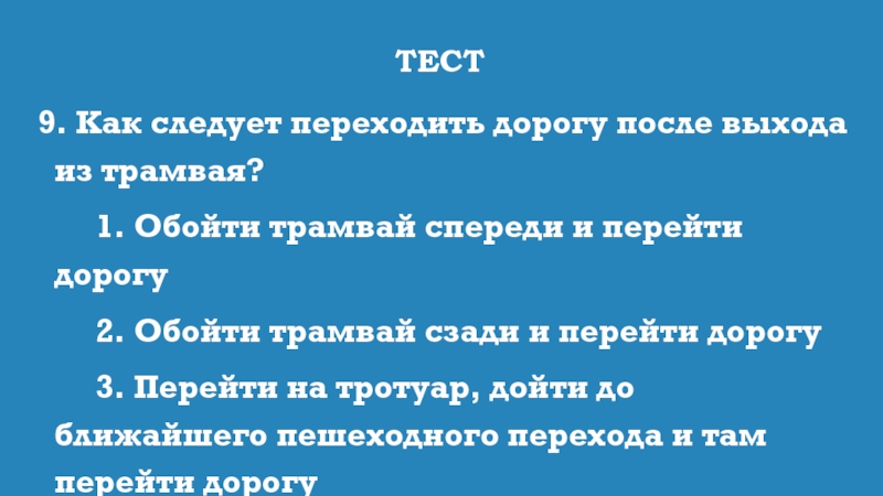 9. Как следует переходить дорогу после выхода из трамвая?