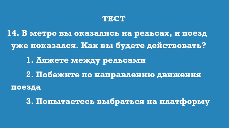 14. В метро вы оказались на рельсах, и поезд уже показался.