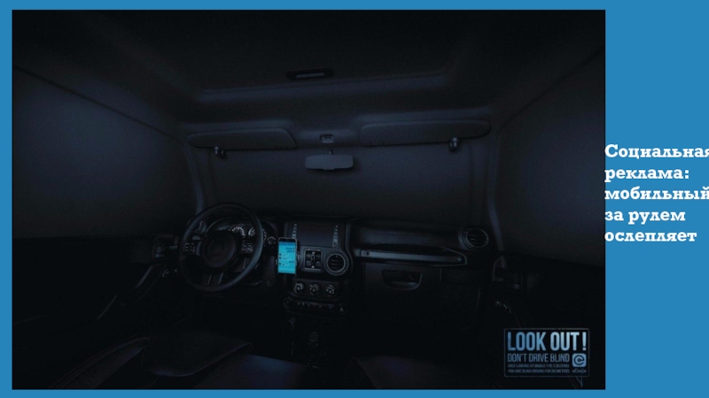 Слайд 27Социальная реклама: мобильный за рулем ослепляет