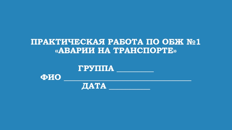 Слайд 87Практическая работа по обж №1 «Аварии на транспорте»