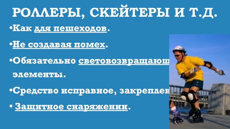 Слайд 48Роллеры, скейтеры и т.д.