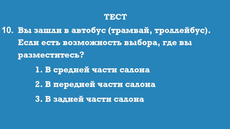 Вы зашли в автобус (трамвай, троллейбус). Если есть возможность выбора, где