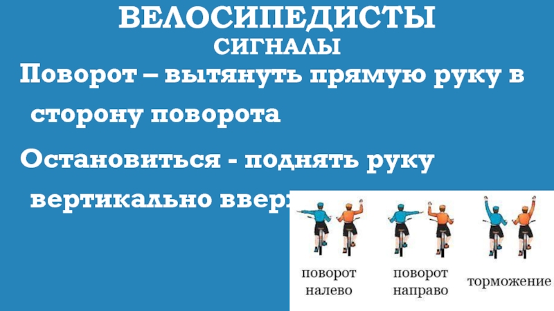 Поворот – вытянуть прямую руку в сторону поворота