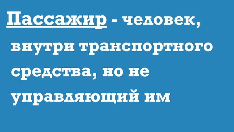 Слайд 28Пассажир - человек, внутри транспортного средства, но не управляющий им