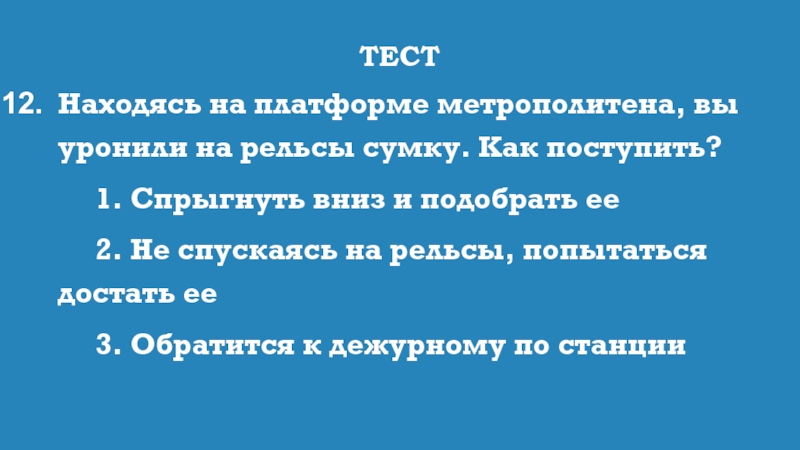 Находясь на платформе метрополитена, вы уронили на рельсы сумку. Как поступить?