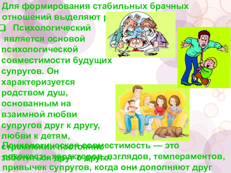 Для формирования стабильных брачных отношений выделяют ряд факторов: