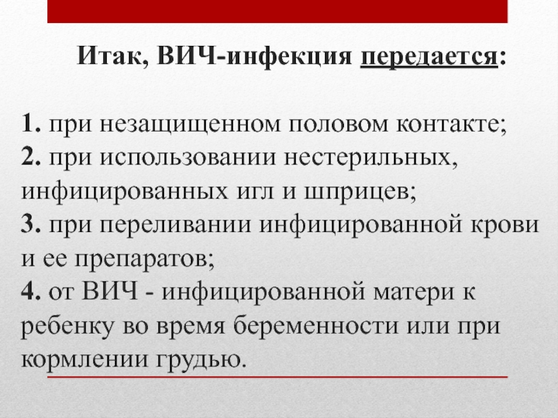 Слайд 14 Итак, ВИЧ-инфекция передается: