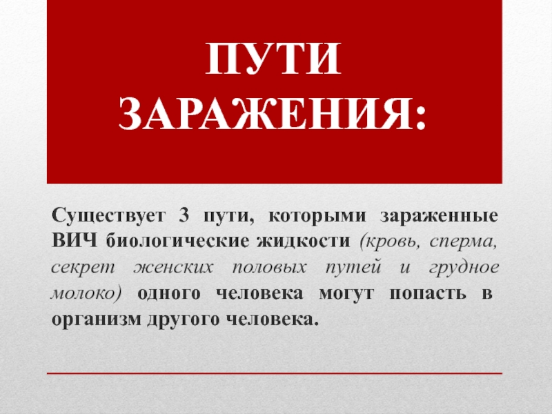 Существует 3 пути, которыми зараженные ВИЧ биологические жидкости (кровь, сперма,