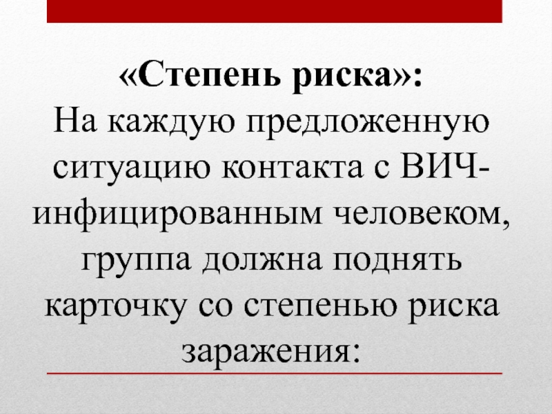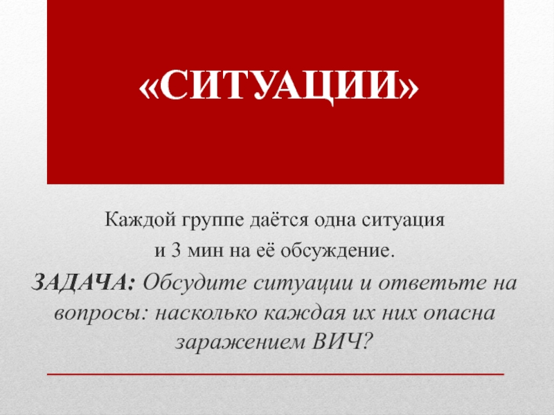 На каждую предложенную ситуацию контакта с ВИЧ-инфицированным человеком, группа должна