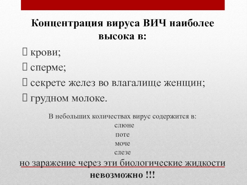 в том, что у зараженных людей вирус в высоких концентрациях содержится в семенной жидкости (сперме) и во влагалищном секрете женских половых путей.