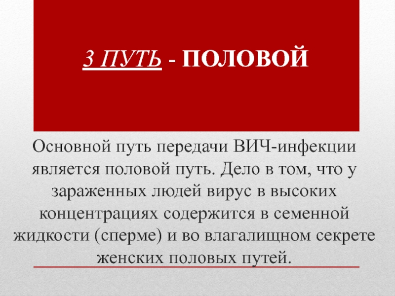 Основной путь передачи ВИЧ-инфекции является половой путь. Дело