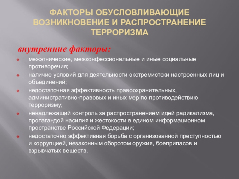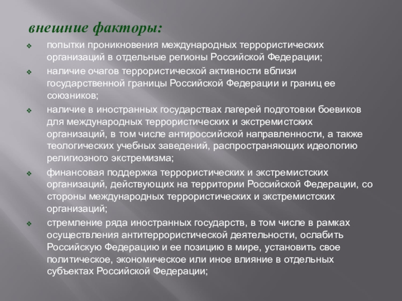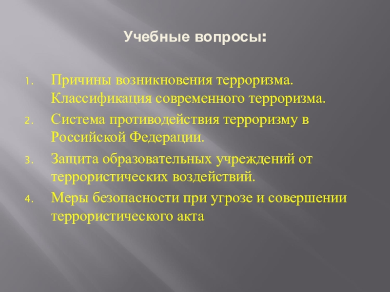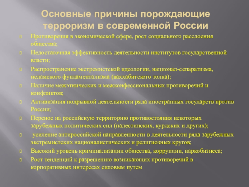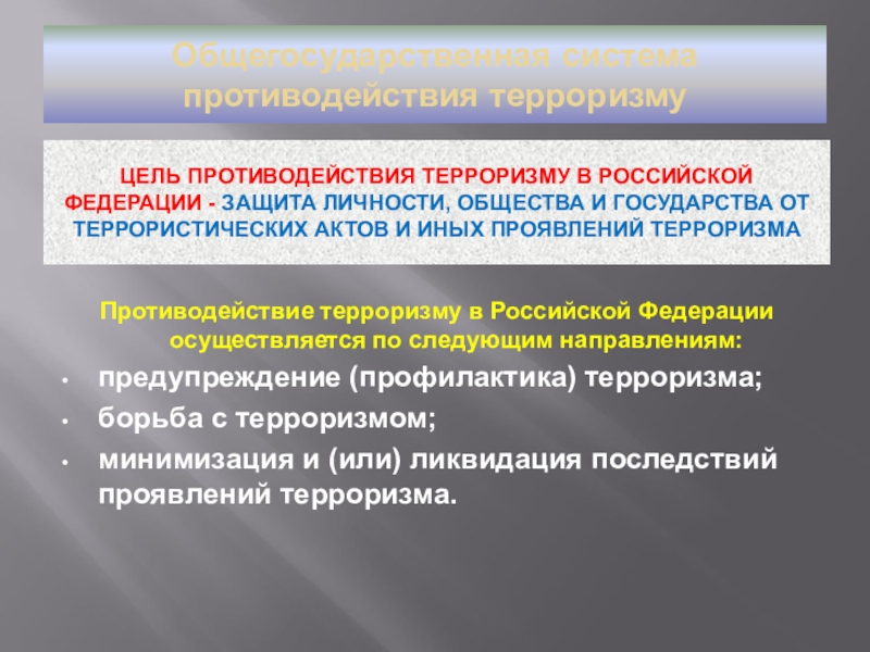 Противодействие терроризму в Российской Федерации осуществляется по следующим направлениям: