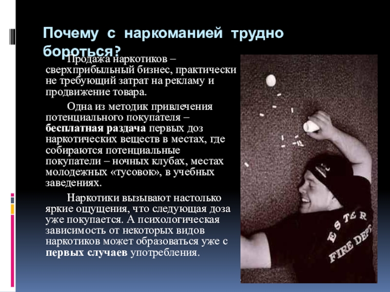 Наркотики вызывают настолько яркие ощущения, что следующая доза уже покупается. А психологическая зависимость от некоторых видов наркотиков может образоваться уже с первых случаев употребления.