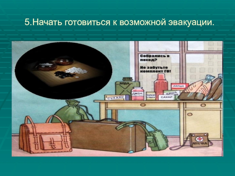 Слайд 395.Начать готовиться к возможной эвакуации.