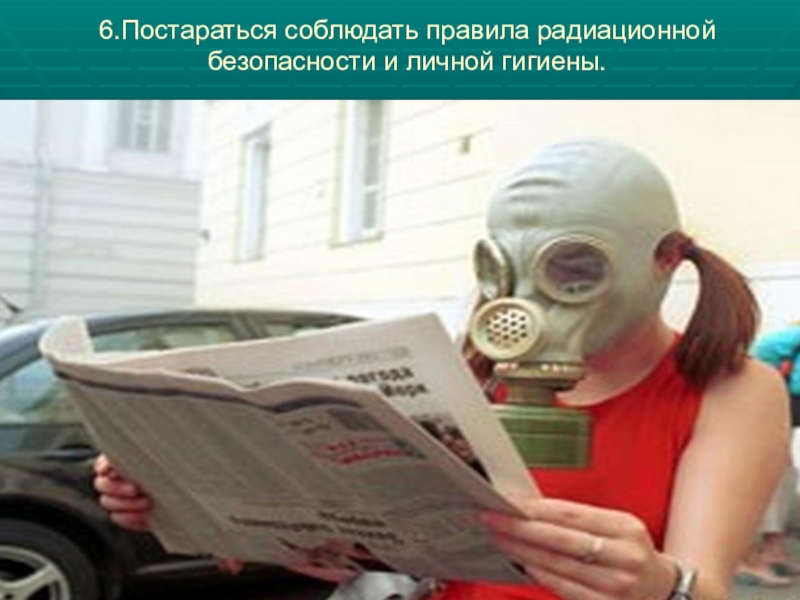 Слайд 406.Постараться соблюдать правила радиационной безопасности и личной гигиены.