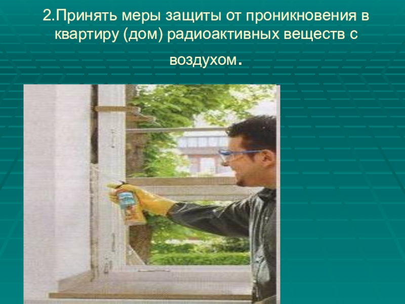 Слайд 362.Принять меры защиты от проникновения в квартиру (дом) радиоактивных веществ с