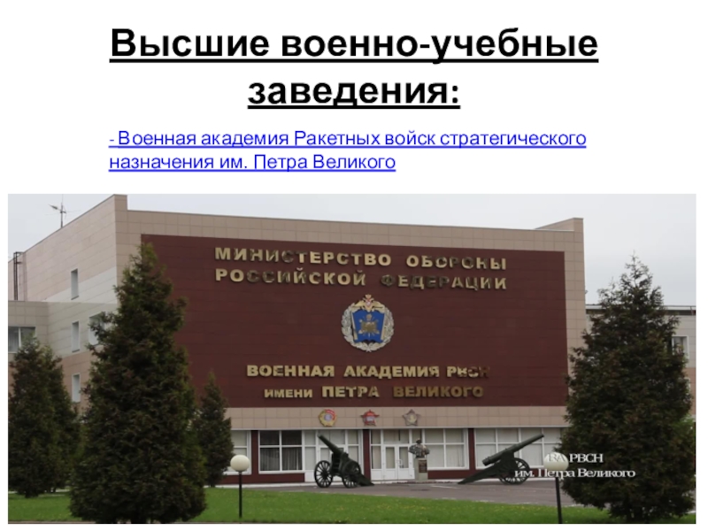 Слайд 9Высшие военно-учебные заведения: